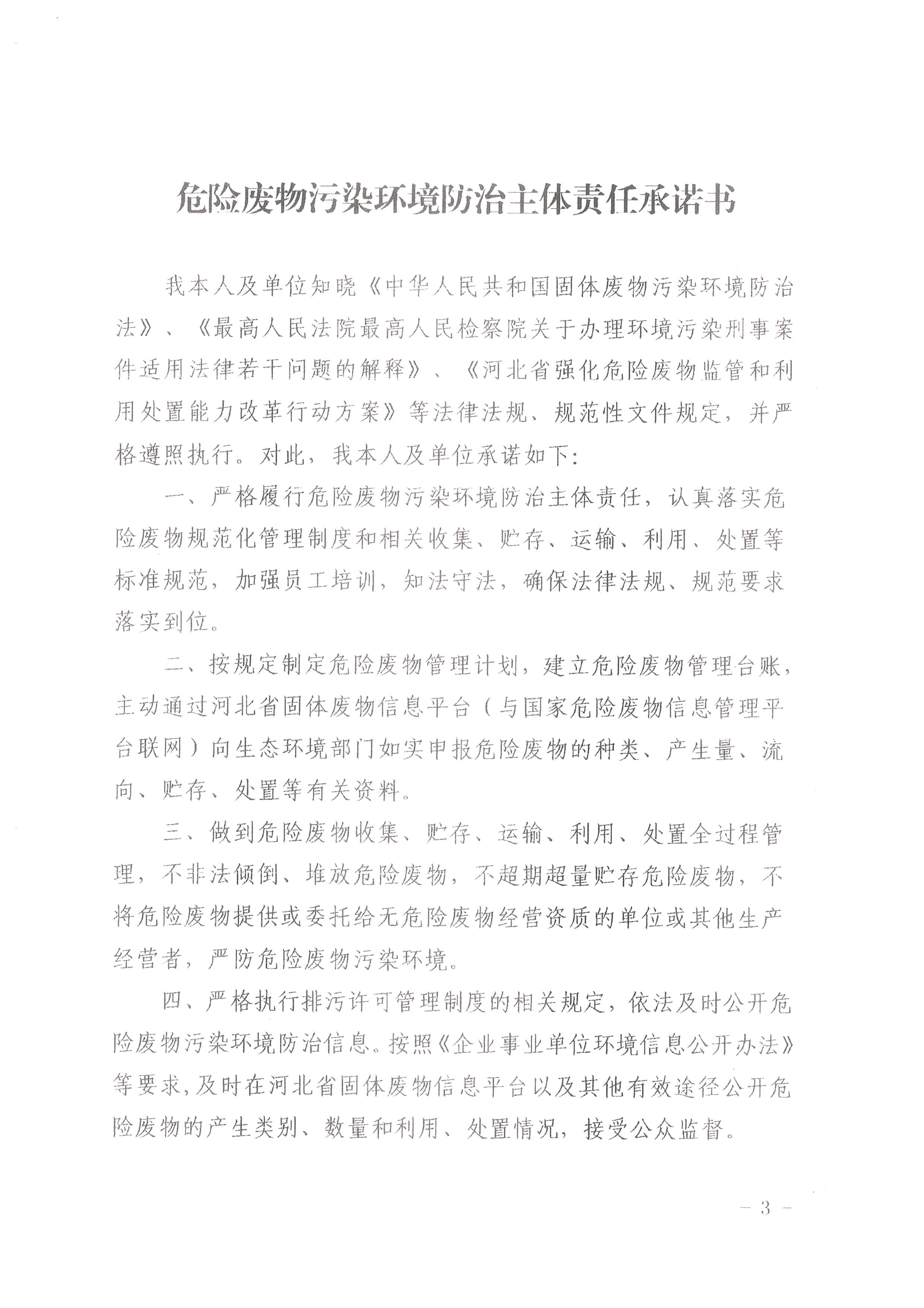 唐山京華危險(xiǎn)廢物污染環(huán)境防治主體責(zé)任承諾書