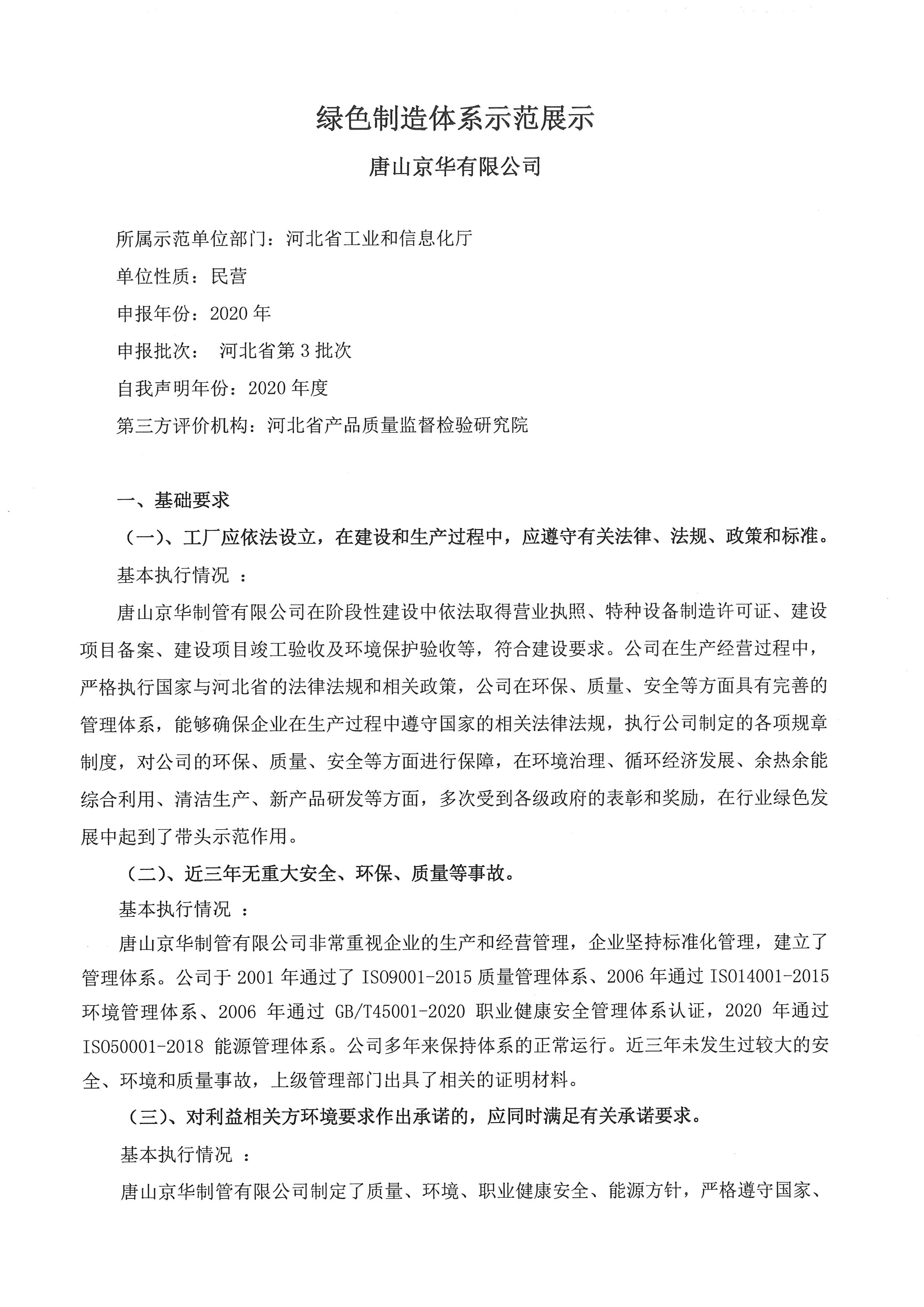 唐山京華制管有限公司2020年社會責(zé)任報告