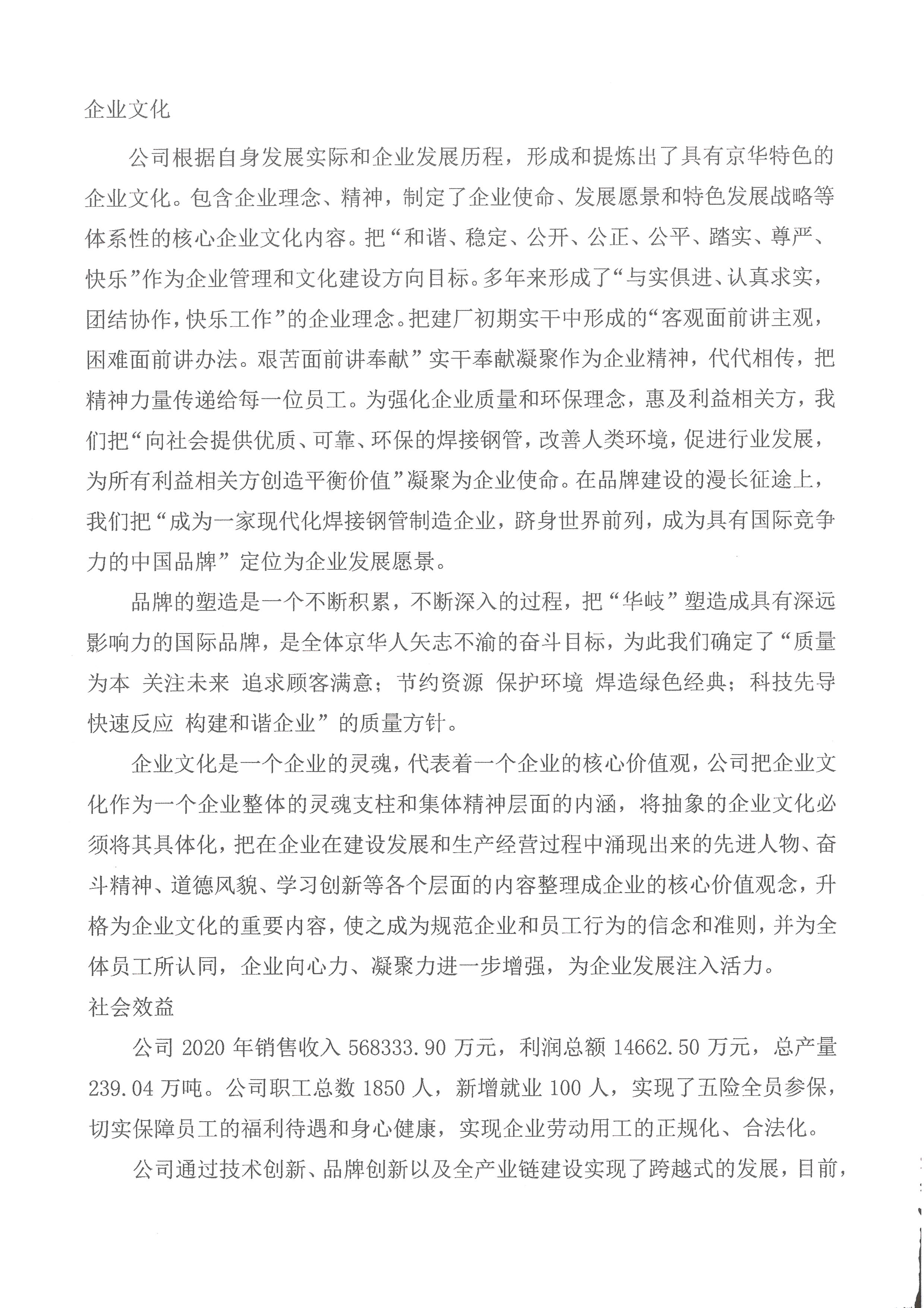 唐山京華制管有限公司2020年社會責(zé)任報告