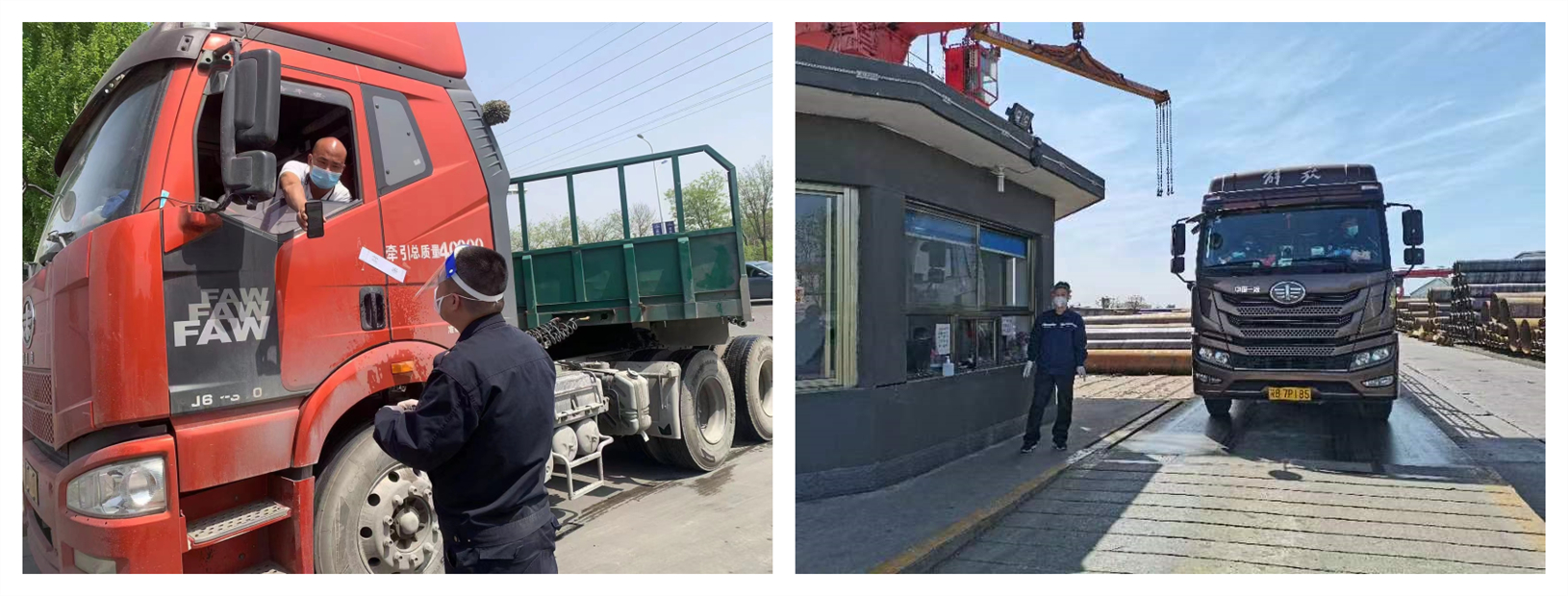 疫情防控不放松,生產(chǎn)發(fā)展不懈怠。復(fù)工復(fù)產(chǎn)后,公司抽調(diào)精干人員,成立物流運(yùn)輸閉環(huán)防控巡查小組,實(shí)行物流運(yùn)輸點(diǎn)對(duì)點(diǎn)閉環(huán)管理,確保零輸入,零感染,保障公司經(jīng)營平穩(wěn)過渡、物流運(yùn)輸高效通暢。目前,公司僅開放一個(gè)出入口,門崗安排專人對(duì)車輛實(shí)施消殺,保衛(wèi)人員按規(guī)定查驗(yàn)司乘人員及出入人員健康碼、行程碼、48小時(shí)核酸證明,檢測(cè)體溫,檢查封條是否完好,并進(jìn)行車輛信息登記。同時(shí)提醒并要求司乘人員全程不得下車,切實(shí)做到閉環(huán)管理。