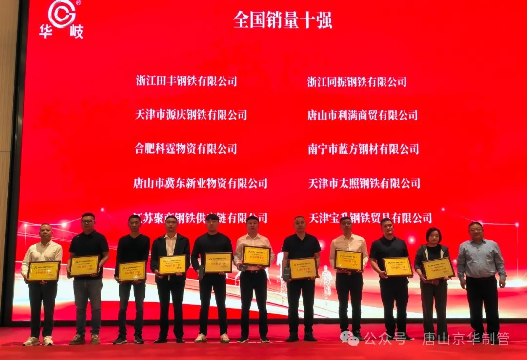 公司向浙江田豐鋼鐵有限公司等10家單位頒發(fā)了“2024年度全國銷量十強(qiáng)”,向浙江高廣物資有限公司等10家單位頒發(fā)了“2024年度品種銷量十強(qiáng)”,向唐山市鑫中正商貿(mào)有限公司等15家單位頒發(fā)了“2024年度優(yōu)質(zhì)合作伙伴”獎項。