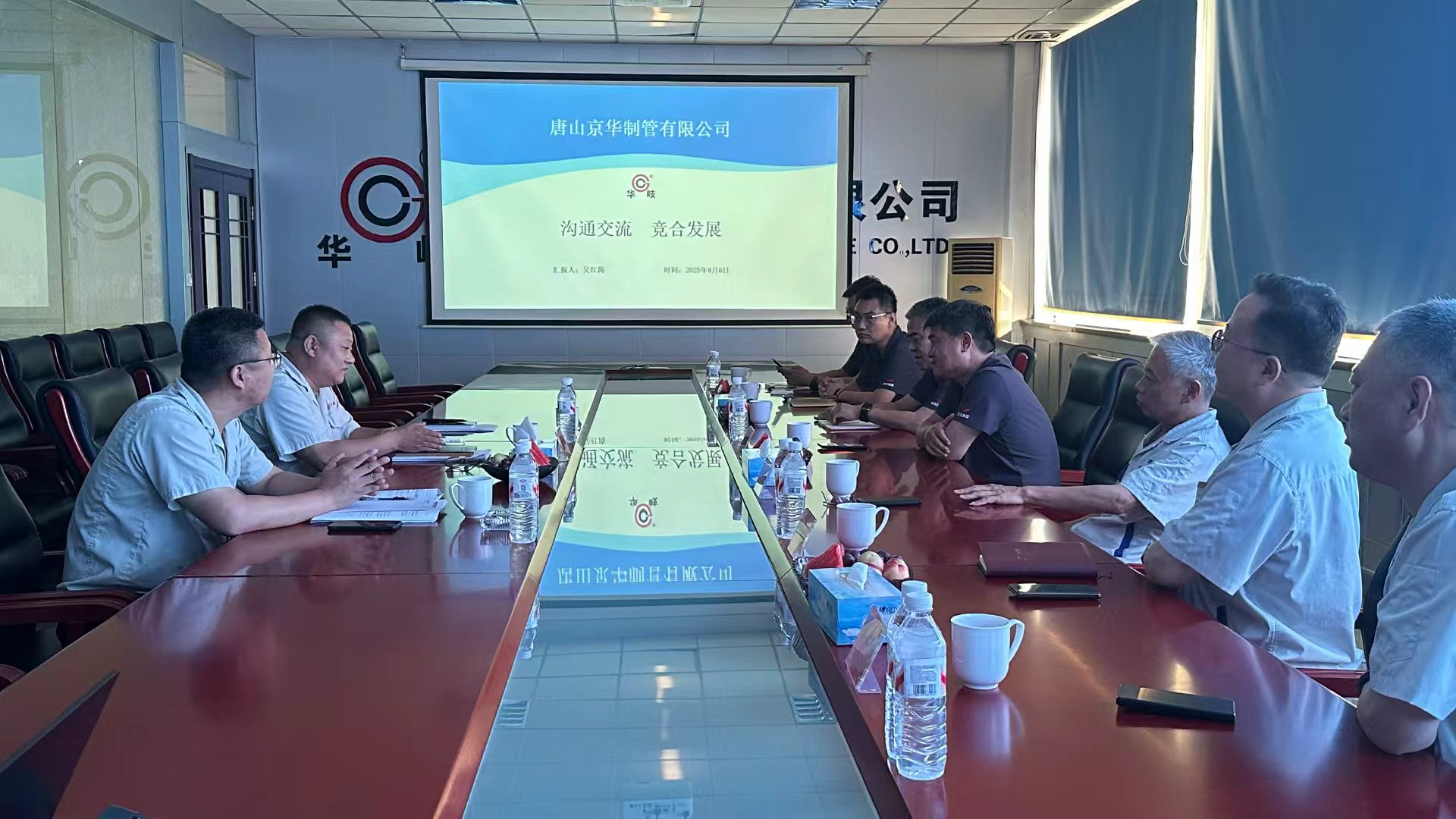 2025年8月6日,唐山正元管業(yè)有限公司總經(jīng)理李茂華、遷安正大通用鋼管有限公司總經(jīng)理文國強(qiáng)分別攜銷售主管人員應(yīng)邀蒞臨唐山京華。公司總經(jīng)理溫朝江、供銷副總胡武和銷售主管人員接待并陪同,三方就當(dāng)前焊接鋼管行業(yè)面臨的市場態(tài)勢、客戶需求及發(fā)展困境展開深入探討,并達(dá)成共識。