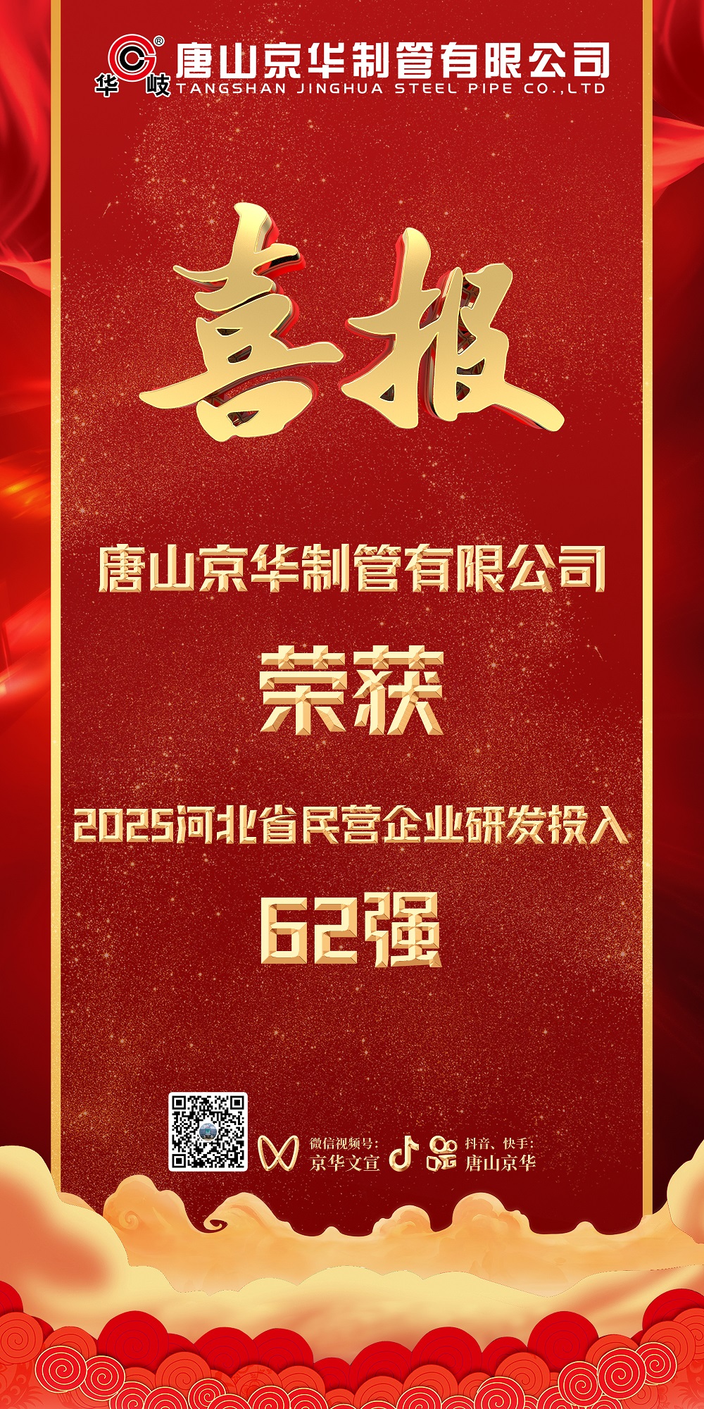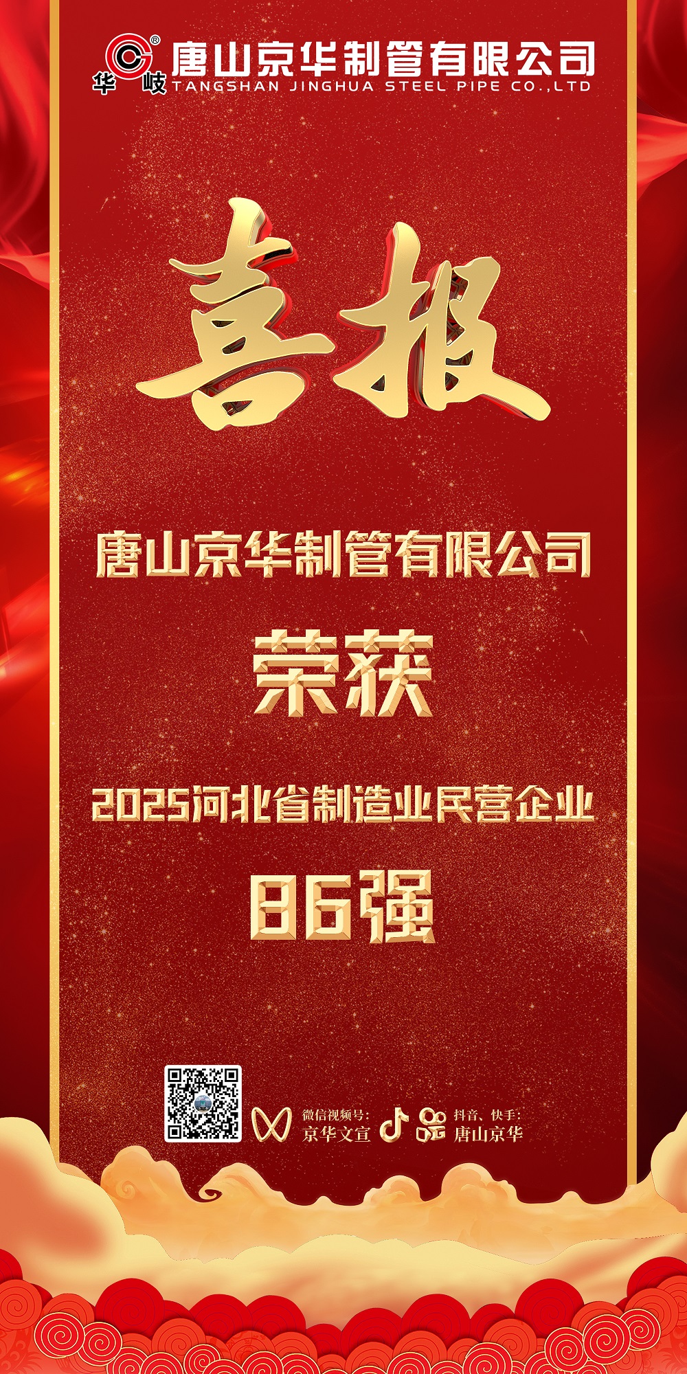 近日,河北省工商聯(lián)發(fā)布了2025河北省民營企業(yè)百強系列榜單。唐山京華榮膺2025河北省制造業(yè)民營企業(yè)100強第86位、河北省民營企業(yè)研發(fā)投入100強第62位。